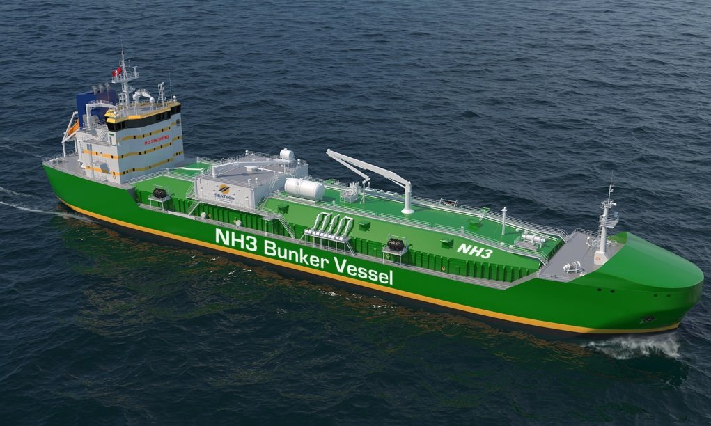 (Ammonia bunker tanker fuelled by Ammonia. Image credit: SeaTech Solutions International)